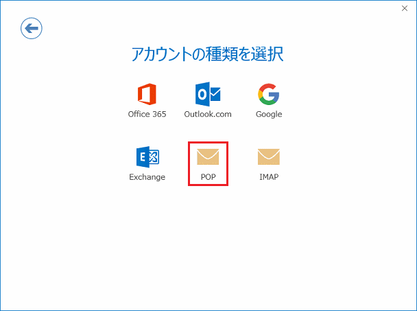 アカウントの種類を選択する画面が表示されるので、「POP」をクリックします。