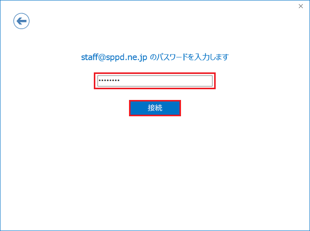 設定するメールアドレスに紐づいているアカウントのパスワード情報を入力し、「接続」をクリックします。