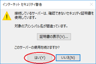 下記の警告が表示されましたら、「はい」をクリックしてください。
