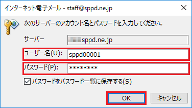 - サーバー:「レンタルサーバー登録通知書」に記載されているPOP3サーバー名
