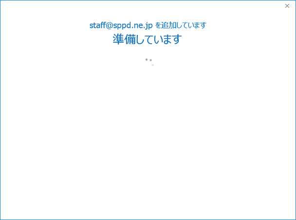 [準備しています]と表示され、設定したアカウント情報にてサーバーに接続できるかどうかテストが行われます。