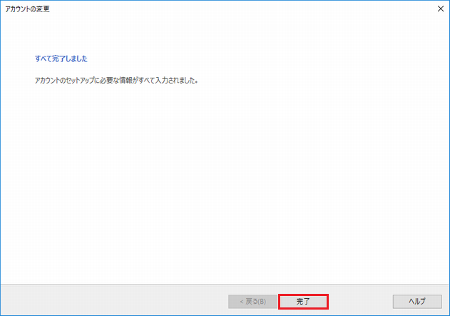 「アカウントの変更」の画面が表示されたら「完了」をクリックしてください。