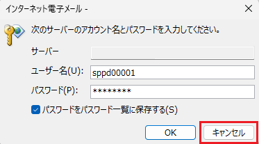 再度ユーザー名とパスワードの入力画面が表示されますので、「ユーザー名」に今回設定するメールアドレスに紐づいているユーザー名を入力し、「OK」をクリックします。
