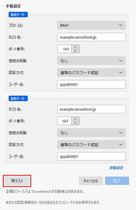 このマニュアルは、Thunderbird 115 でのメール設定方法(受信方法:IMAP)です。